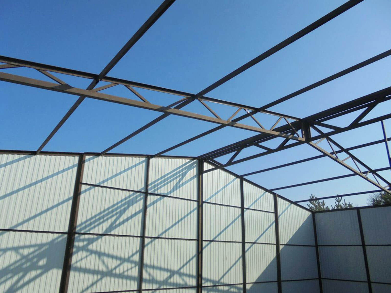 Wir herstellen und verkaufen Blechgaragen, Unterstände, Hallen, Hundekäfige, Carports und Gartenhäuser.