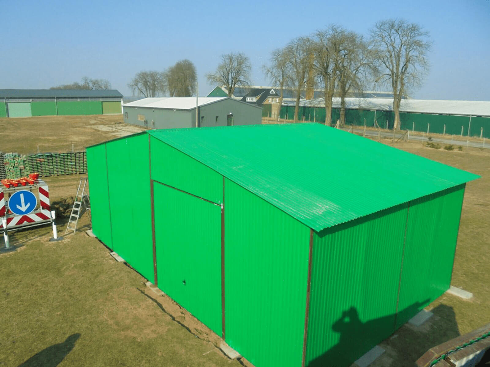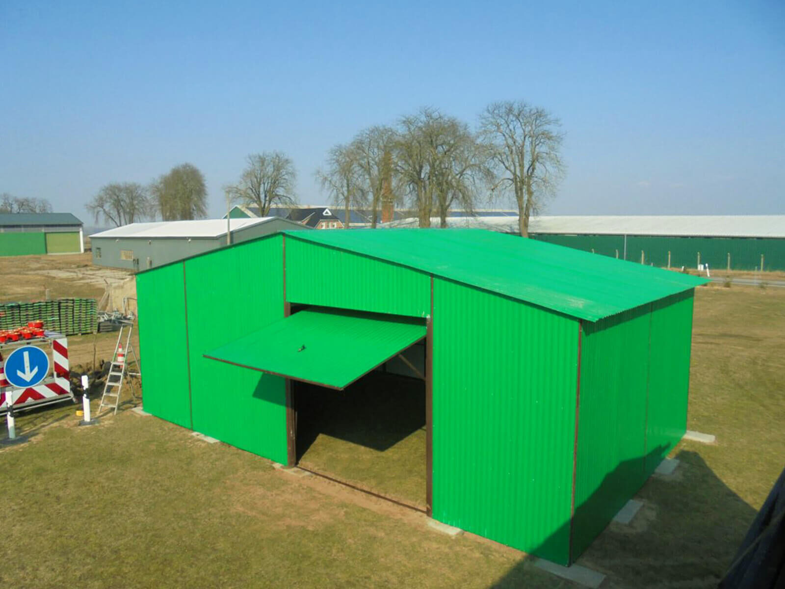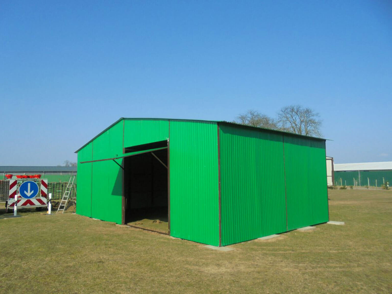 Lagerhalle Blechhalle 6 x 8 Chromgrün 6020 Matt Doppelflügeltor