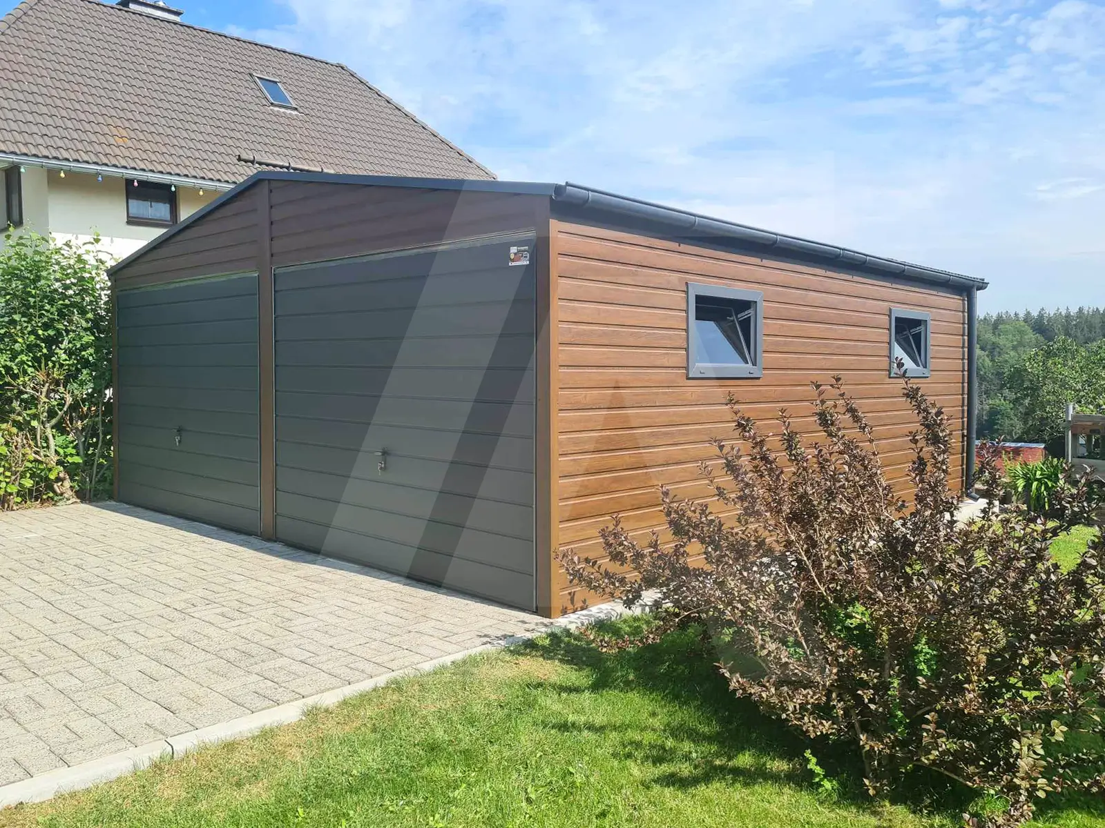 Blechgarage holzähnliche Nussbaumfarbe Grün höchster Qualität